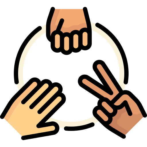 The game is played with three possible hand signals that represent a rock, paper, and scissors.